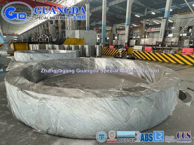 Guangda proporciona el diferente tipo de forjar los anillos. Controlamos estrictamente la cadena entera de la producción, del derretimiento al balanceo de los anillos. Guangda puede ofrecer a anillos de diámetros hasta 6300 milímetros y pesos hasta 60.000 kilogramos.